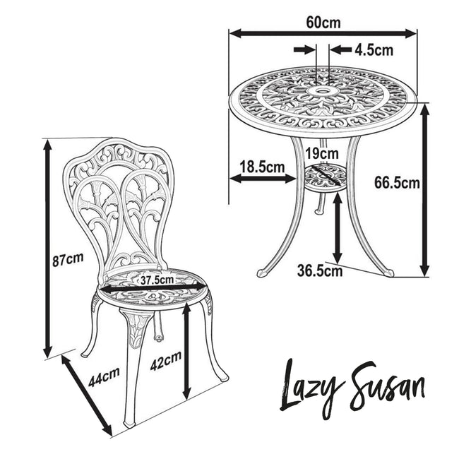 Das Tulip Bistroset in unserem klassischen Antik Bronze eignet sich ideal für einen kleinen Balkon, eine Veranda oder ein lauschiges Plätzchen im Garten. Dank des dekorativen Blumendesigns mit einem Ring aus Tulpen ist der Bistro-Tisch ganzjährig ein Hingucker. Ergänzt wird der Tisch in diesem kompakten Set mit zwei passenden, wunderschön verzierten Bistrostühlen. Perfekt für eine Tasse Tee oder einen Cocktail am Abend, ist das Tulip Gartenmöbel-Set für zwei Personen eine stilvolle Lösung, wenn der Platz begrenzt ist.