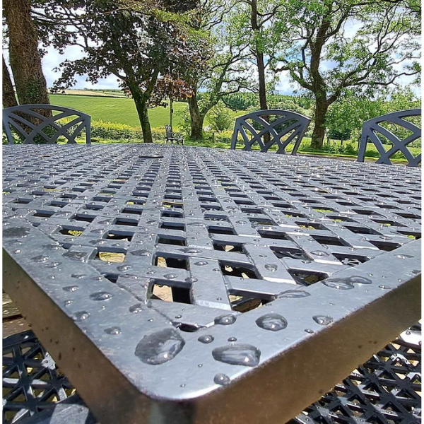 Produkte, die Sie hier finden: Olivia Tisch mit Lazy Susan und Sonnenschirm mit Kate Stühlen in Antique Bronze.