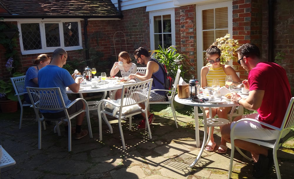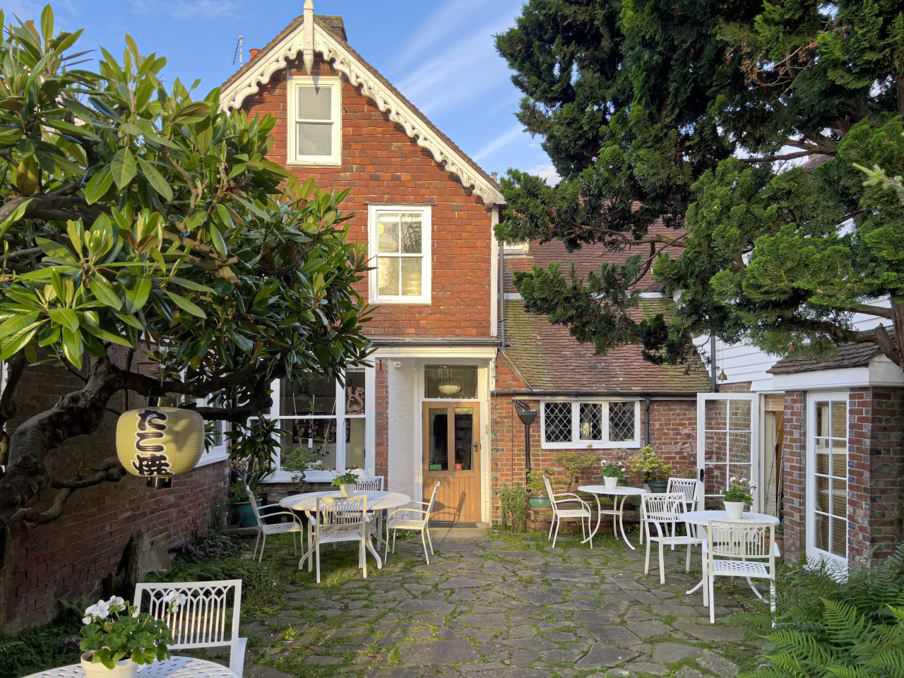 Little Dane Court ist ein charmantes, 500 Jahre altes Haus im Zentrum von Tenterden in Kent, das als Bed & Breakfast für Besucher der örtlichen Weinberge und berühmten Gärten betrieben wird. Es verfügt über einen geschlossenen Innenhof, der in den Sommermonaten ideal für ein Frühstück im Freien ist.