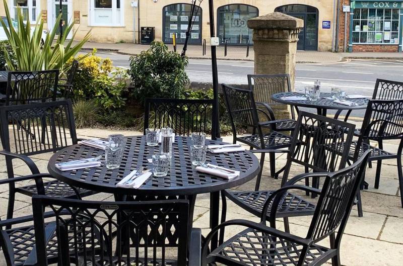 "The Blue Boar" mit Blick auf den Marktplatz in der historischen Stadt Witney stammt aus dem 17. Jahrhundert zurück. 200 Jahre lang trug diese Gaststätte in Cotswold den Namen "The Marlborough" zu Ehren des Herzogs, bevor der ursprüngliche Name bei der Wiedereröffnung 2011 wiederhergestellt wurde.