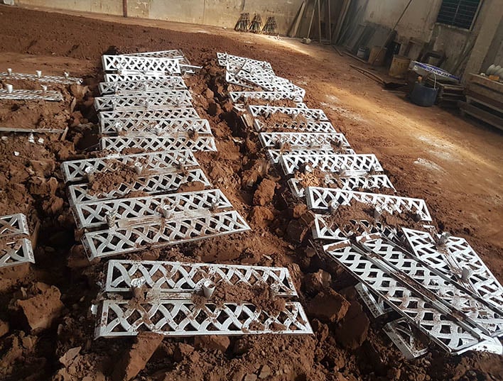 Das Sandgussverfahren wird mit diesen Formen wiederholt und die Teile werden entnommen.