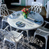 Im Mittelpunkt des Amy Gartenmöbel-Sets mit vier Stühlen steht ein formschöner Rundtisch, an dem vier Personen bequem Platz nehmen können. Die kunstvoll aus robustem Aluminiumguss gefertigte Tischplatte überzeugt durch ihr verflochtenes Design mit schlichtem Randmuster. Erhältlich in drei Farbvarianten, wird dieses Set in Weiß garantiert zum Blickfang auf jeder Terrasse. Der Amy Gartentisch vereint höchste Materialbeständigkeit mit liebevoller Handwerkskunst und seine Größe ist ideal für kleinere Runden und entspannte Familienessen an warmen Sommerabenden.