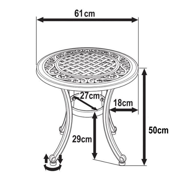 Der Ava Tisch ist ein kompakter, charmanter Beistelltisch, der alleinstehend genutzt werden kann oder auch in als Kaffeetisch in Kombination mit einer Gartenbank oder anderen Gartenmöbeln. Wunderschön gefertigt aus Aluminiumguss, besticht die niedrige Tischplatte durch das zentrale Gittermuster und den Zierrand mit floralem Motiv. Die Lackierung in zeitlosem Schiefergrau ist optisch auf unser restliches Gartenmöbelsortiment abgestimmt und passt zu verschiedensten Gartenstilen. Vielseitig einsetzbar und leicht, ist der Ava Tisch ein ideales Schmuckstück für kleine Gärten, für schmale Terrassen und für Balkone.