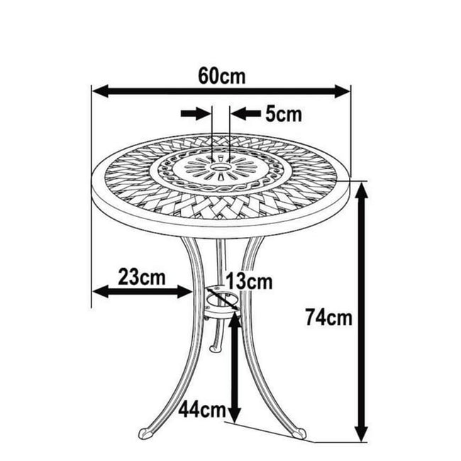 Der Eve Bistrotisch ist eine charmante und zugleich praktische Option für Balkone und sonnige Ecken im Garten. Mit seinem detailreichen Flechtmuster aus gegossenem Aluminium ist Eve der ideale Gartentisch, wenn Ihr Platz begrenzt ist. Perfekt für den morgendlichen Espresso, eine süße Auszeit oder auch als Beistelltisch neben dem Grill, fügt sich der Bistrotisch mit seiner Lackierung in klassischem Antik Bronze wunderbar in jede Art von Außenbereich ein, egal ob traditionell oder modern.