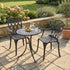 Der Eve Bistrotisch mit zwei Stühlen ist eine charmante und zugleich praktische Option für Balkone und sonnige Ecken im Garten. Mit seinem detailreichen Flechtmuster aus gegossenem Aluminium ist Eve der ideale Gartentisch, wenn Ihr Platz begrenzt ist. Perfekt für den morgendlichen Espresso, eine süße Auszeit oder ein Abendessen zu zweit, wird der Tisch mit zwei April Stühlen geliefert, die aber auch nach Wahl für ein anderes Modell getauscht werden können. Der Bistrotisch mit seiner Lackierung in klassischem Antik Bronze fügt sich wunderbar in jede Art von Außenbereich ein, egal ob traditionell oder modern.