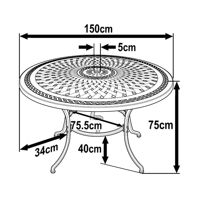 Das Frances Gartenmöbel-Set für sechs Personen hat in seinem Mittelpunkt einen großzügigen Rundtisch, der garantiert zum Blickfang jedes Außenbereichs wird. Wunderschön gefertigt aus gegossenem Aluminium, besticht der Gartentisch durch ein kunstvolles Gittermuster mit geflochtenem Randdesign und die Lackierung in zeitlosem Schiefergrau fügt sich in jeden Gartenstil harmonisch ein. Perfekt geeignet für Familienessen oder spontane Grillabende mit Freunden, wird diese Sitzgruppe standardmäßig mit sechs April Stühlen geliefert, kann aber auch mit anderen Stühlen sowie mit Sonnenschirmen und Extras Ihrer Wahl individuell angepasst werden.