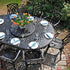 The Gloria 8-seater set, complete with revolving Lazy Susan, is our most popular mid-range table, offering spacious, comfortable seating for outdoor dining. This cast aluminium garden furniture is totally weatherproof and designed to be left outside all y