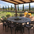 Das Gloria Gartenmöbel-Set für zehn Personen umfasst einen großzügigen ovalen Tisch sowie zehn bequeme April Stühle, perfekt für gesellige Mahlzeiten im Freien. Mit einem verflochtenen Gittermuster, eingefasst von einem kunstvollen Rand mit vollständig abgerundeter Kante, ist der Gloria Tisch eine stilvolle Option für größere Gruppen. Die Umsetzung der elliptischen Form in dieser Größe zeugt von großer handwerklicher Sorgfalt und Präzision, und mit Ihrer Lackierung in klassischem Antik Bronze harmoniert diese Sitzgruppe mit jedem Gartenstil.