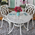 Der runde Hannah Gartentisch in elegantem Weiß besticht durch ein geflochtenes Gittermuster und einen verspielten Rand mit floralem Design. Die kunstvolle Metallarbeit macht diesen Rundtisch zu einem echten Blickfang und zur idealen Wahl für kleine Gärten und Terrassen. Ob für ein romantisches Frühstück, Aperitifs im Freien oder ein entspanntes Mittagessen mit Freunden – der attraktive Hannah Tisch bietet Platz für jede Gelegenheit. Das Set mit zwei Stühlen verleiht jedem Außenbereich den Charme von einem englischen Landhaus-Café.