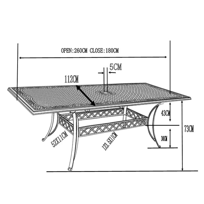 Die ausziehbaren, rechteckigen Lazy Susan Tische sind innovative, moderne und platzsparende Sets für das tägliche Abendessen mit der Familie oder größere Festivitäten. Das Jennifer 10-Sitzer-Tischset ist von der Größe her ähnlich wie unser ausziehbarer Vanessa Tisch und bietet, wenn man ihn komplett auszieht, Platz für 10 Personen. Lazy Susan Gartenmöbel bestehen aus hochwertigem Aluminiumguss und bieten Ihnen höchsten Komfort zu einem exzellenten Preis-Leistungs-Verhältnis. Eine Vielzahl an Zubehör sorgt für das perfekte Essen im Freien. Sie können etwa aus vier verschiedenen Kissen- und Sonnenschirmfarben wählen. Um in den vollen Genuss des Jennifer Tisches zu kommen, benötigen Sie eine Bodenfläche von 410 x 260 cm für die ausgezogene Version (Beachten Sie dazu unsere Spezifikationen und Maße für mehr Informationen). Im Lieferumfang dieses klassischen Ausziehtisches sind 10 Stühle Ihrer Wahl enthalten. Natürlich können Sie sich auch für passende Gartenbänke anstelle von Stühlen entscheiden. Zwei Stühle entsprechen dabei in etwa der Größe einer Gartenbank. Rufen Sie dazu einfach unseren freundlichen Kundenservice an unter 01243717197, falls Sie an dieser Option interessiert sind.