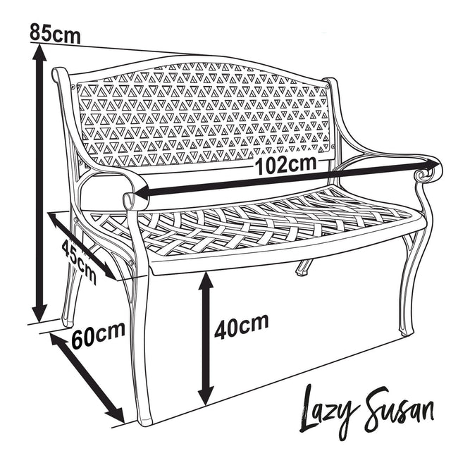 Die July Gartenbank in zeitlosem Schiefergrau besticht durch ihr großflächiges, symmetrisches Gittermuster. Aufwendig aus Aluminiumguss gefertigt, ist diese Bank robust und stabil, lässt sich aber dennoch mühelos im Garten umstellen. Die July Bank überzeugt als eigenständiges Möbelstück an einem sonnigen Plätzchen oder als zusätzliche Sitzgelegenheit am Gartentisch. Sie ist ideal, um entspannt ein Buch zu lesen oder auch für einen Kaffeeplausch zu zweit.