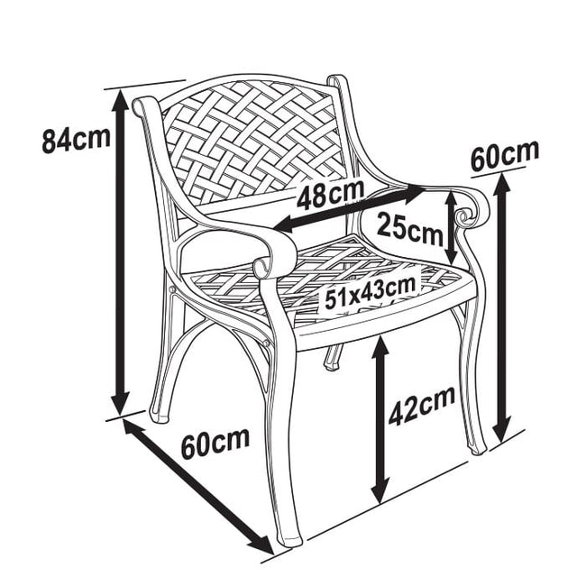 Unser Kate Stuhl hat eine etwas breitere Sitzfläche als die Modelle April, Rose und Emma, und ist damit eine bequeme Option für entspanntes Sitzen. Mit seinem überkreuzten Metallmuster vereint der Gartenstuhl elegante Linienführung mit hoher Stabilität und Langlebigkeit. Zudem hat er einen sicheren Stand auf jeder Außenfläche - ob Rasen, Kies, Pflastersteine oder Holzdeck. In klassischem Antik Bronze lackiert, ist der Kate Stuhl bei vielen unserer Gartenmöbel-Sets gegen einen kleinen Aufpreis als alternative Sitzgelegenheit erhältlich.