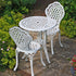 Disponibles en coloris Bronze Ancien et blanc, ces chaises de jardin élégantes sont en aluminium moulé et ne rouilleront pas. Leur design original évoque le style Art Déco.