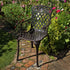 Der Rose Stuhl besticht durch das filigrane Rosenmotiv an der Rückenlehne, das im Kontrast zu dem stabilen Dreiecksmuster auf der Sitzfläche steht. Mit seinem charmanten Aussehen und der robusten Bauweise zählt das Modell zu unseren beliebtesten Sitzgelegenheiten. Der Rose Stuhl passt hervorragend zu unseren Tischen aus Aluminiumguss und ist bei zahlreichen Sets als Sitzoption erhältlich. Er lässt sich leicht zusammenbauen und mühelos im Garten umstellen, damit Sie ihn vielseitig einsetzen können. Sein florales Design und die Lackierung in Antik Bronze machen den Stuhl zu einem echten Hingucker.