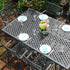 Der Sophia Tisch für 12 Personen ist ideal, um große Gruppen von Freunden zu bewirten, oder für einen Grillabend mit der ganzen Familie. Seine rechteckige Form und die klaren Linien werden durch ein klassisches Gitterdesign unterstrichen. Dieser beeindruckende Tisch zieht Blicke auf sich, egal wo er steht! Aufwendig gefertigt aus Aluminiumguss, wird der Gartentisch im Set mit 12 April Stühlen geliefert, die Bestuhlung lässt sich jedoch auch nach Ihren Wünschen anpassen. Das versatile Sophia Set in Schiefergrau besteht aus zwei zusammengefügten Tischen, die auch separat verwendet werden können.