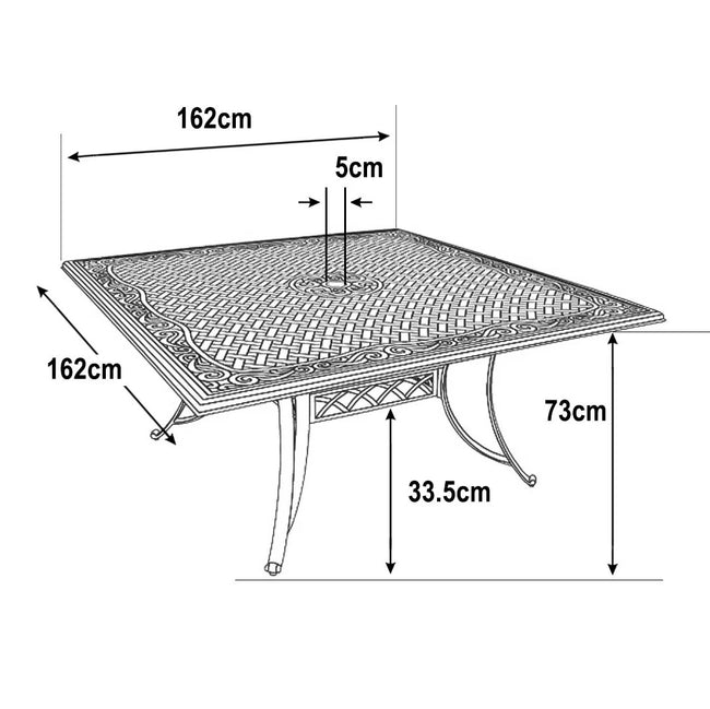 Der Tanya Gartentisch für 8 Personen ist unser größtes quadratisches Modell und bietet ausreichend Platz für gemütliche Mahlzeiten im Freien. Mit seinem kunstvoll verflochtenen Metallmuster und den geschwungenen Randverzierungen ist dieser großzügige Tisch ein Blickfang in jedem Garten. Der Tisch wird standardmäßig mit 8 April Stühlen geliefert, lässt sich jedoch nach Ihrem Geschmack anpassen und ergänzen – z.B. mit einer Drehplatte, um Dips und Beilagen entspannt herumzureichen. Das Tanya Set in unserem zeitlosen Farbton Schiefergrau vereint Langlebigkeit mit klassischer Eleganz.